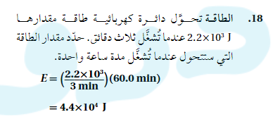 الطاقة تحول دائرة كهربائية طاقة مقدارها 2.2×103J عندما تشغل ثلاث دقائق حدد مقدار الطاقة التي ستتحول عندما تشغل مدة ساعة واحدة