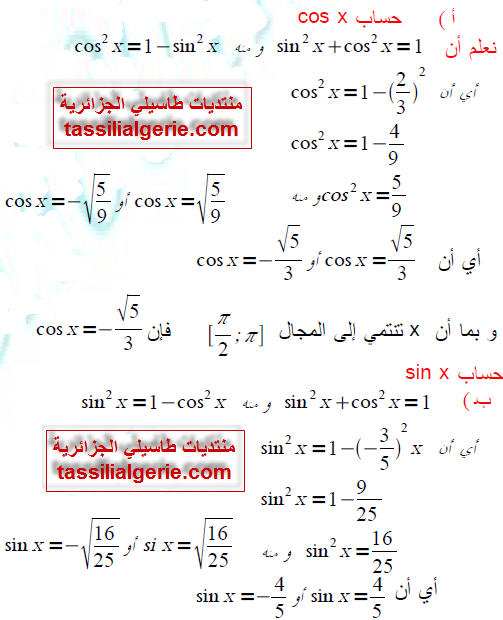 حل تمرين 55 ص 110 cos”x+sin”x=1 cos”x+(2/3)”=1 cos”x+4/9=1 cos”x=1-4/9 cos”x=9/9-4/9 cos”x=5/9 cos x=√5/9 cos”x+sin”x=1 3/5- sin”x=1 …