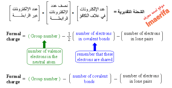 - يتم إثبات تركيب لويس السابق عن طريق حساب الشحنة التقديرية لكل ذرة من الذرات الموجودة فى الجزئ وأن كان مساوية للصفر فالتركيب المموجود صحيح.
