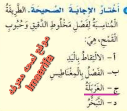الطريقة المناسبة لفصل مخلوط الدقيق وحبوب القمح هي حل كتاب العلوم ثالث ابتدائي؟