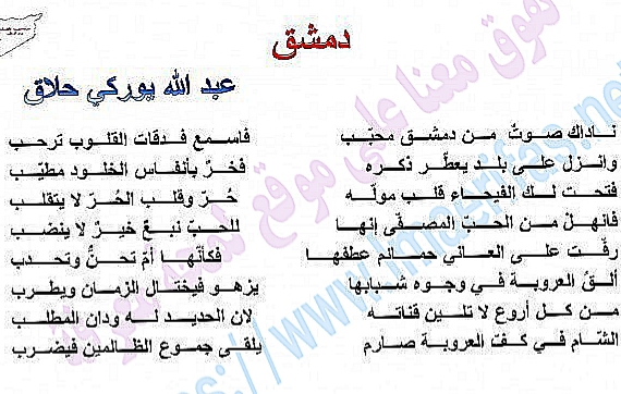 شرح وإعراب قصيدة دمشق للصف الثامن للشاعر عبدالله يوركي حلاق ؟